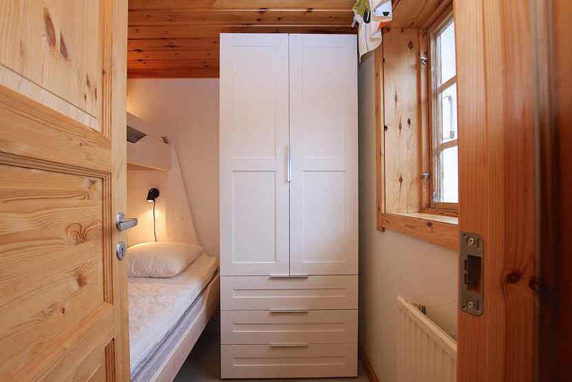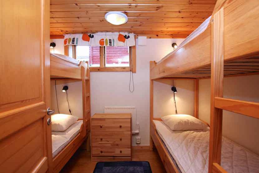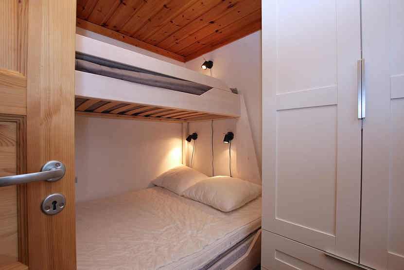 Soveværelse-1 = 1 køjeseng med 120 cm bred underkøje. Soveværelse-2 = 2 køjesenge.