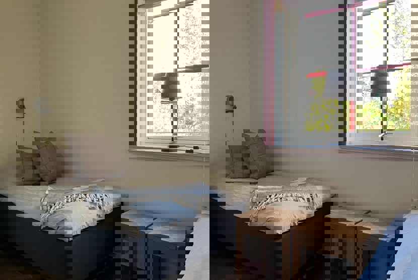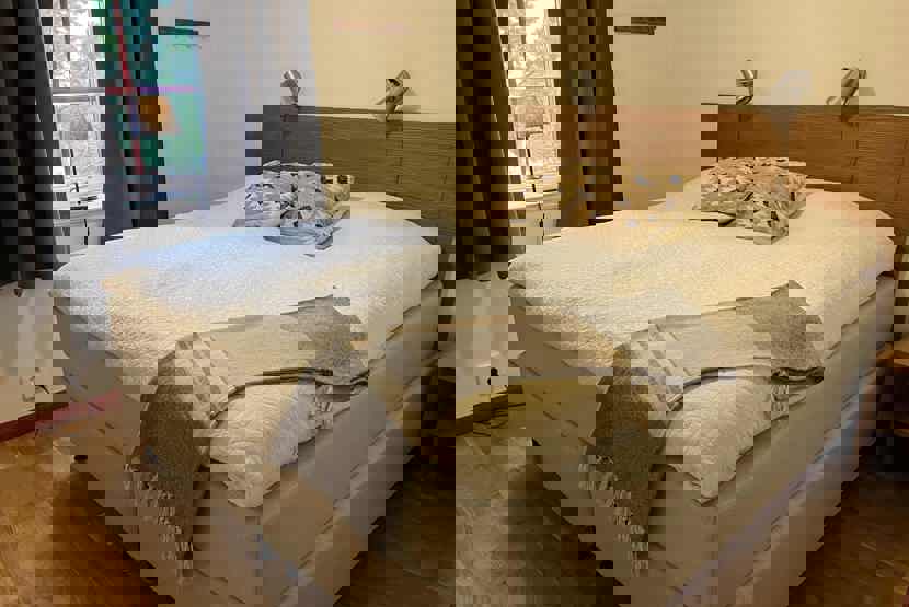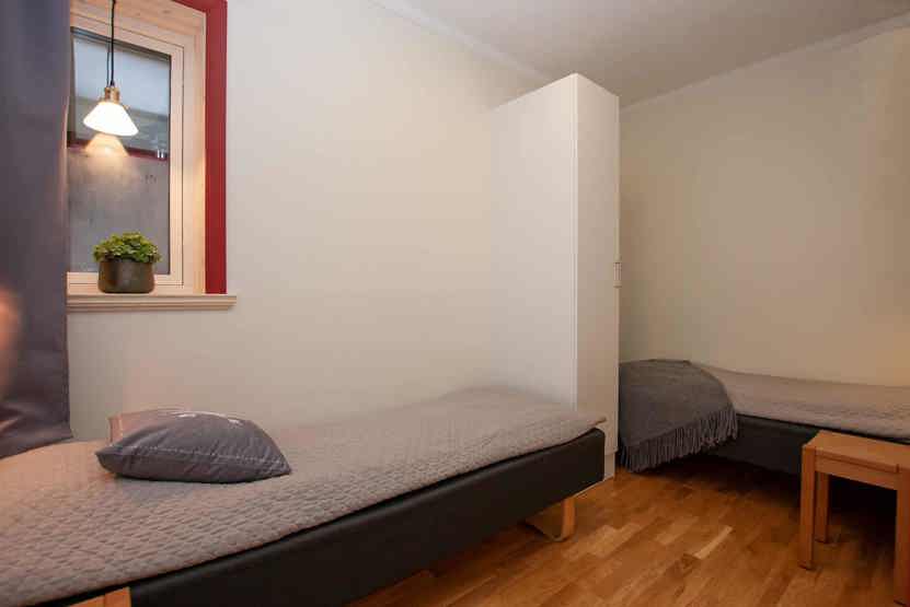 Soveværelse-1 = 1 dobbeltseng 180 cm bred. Soveværelse-2 = 1 dobbeltseng 180 cm bred. Soveværelse-3 = 2 enkeltsenge 90 cm bred. Soveværelse-4 = 1 enkeltseng, 1 enkeltseng 80 cm bred.