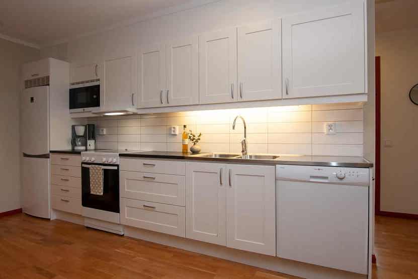 vaskemaskine, tørreskab, balkon/altan (der skovles ikke sne), skiopbevaring, 2 parkeringspladser, adgang til fælles elbilopladere med type 2 stik mod betaling.
