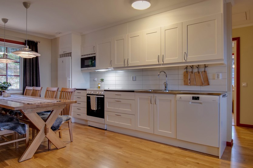 vaskemaskine, tørreskab, balkon/altan (der skovles ikke sne), skiopbevaring, 2 parkeringspladser, adgang til fælles elbilopladere med type 2 stik mod betaling.