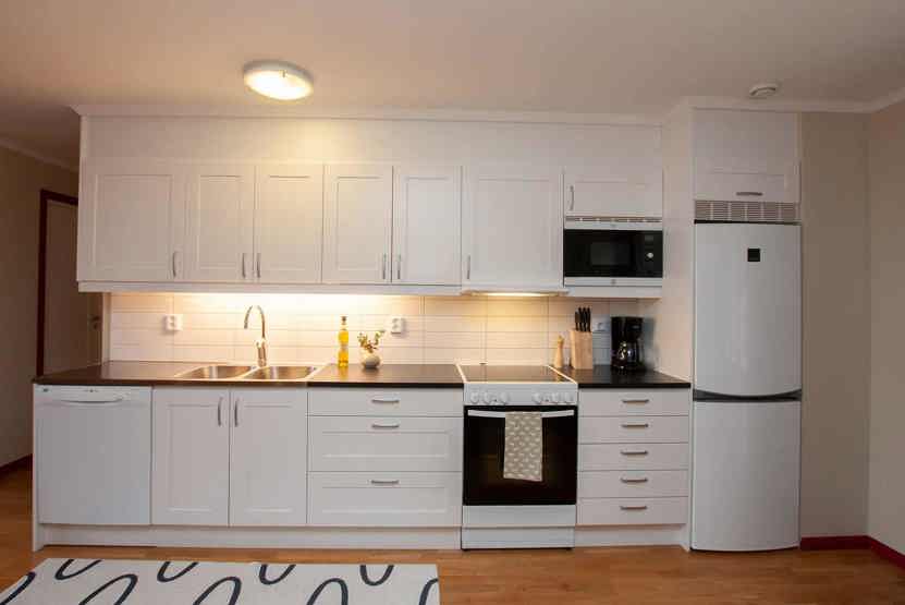 vaskemaskine, tørreskab, balkon/altan (der skovles ikke sne), skiopbevaring, 2 parkeringspladser, adgang til fælles elbilopladere med type 2 stik mod betaling.