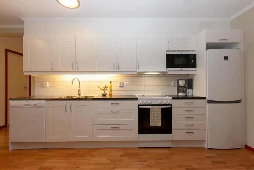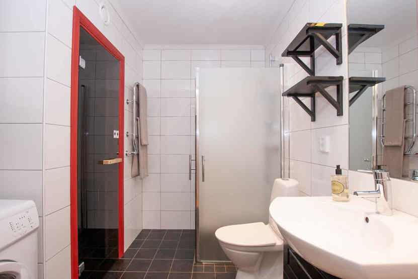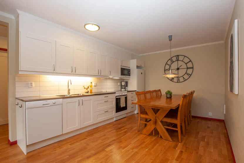 vaskemaskine, tørreskab, balkon/altan (der skovles ikke sne), skiopbevaring, 2 parkeringspladser, adgang til fælles elbilopladere med type 2 stik mod betaling.