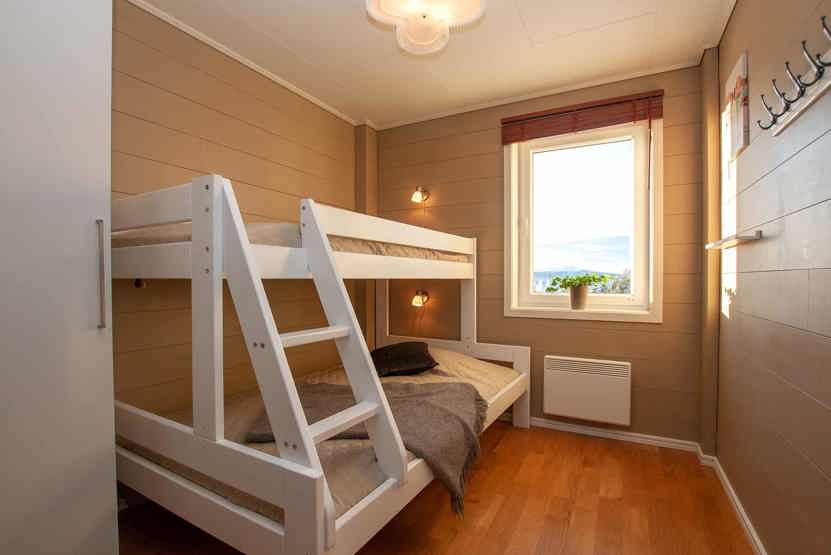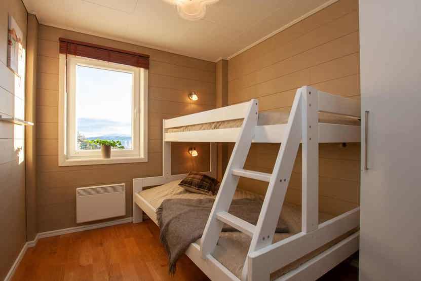 Soveværelse-1 = 1 dobbeltseng. Soveværelse-2 = 1 dobbeltseng. Soveværelse-3 = 1 dobbeltseng. Soveværelse-4 = 1 køjeseng med 120 cm bred underkøje. Soveværelse-5 = 1 køjeseng med 120 cm bred underkøje. Soveværelse-6 = 1 køjeseng med 120 cm bred underkøje.