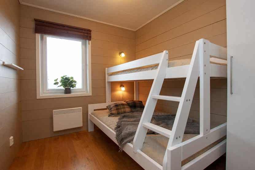 Soveværelse-1 = 1 dobbeltseng. Soveværelse-2 = 1 dobbeltseng. Soveværelse-3 = 1 dobbeltseng. Soveværelse-4 = 1 køjeseng med 120 cm bred underkøje. Soveværelse-5 = 1 køjeseng med 120 cm bred underkøje. Soveværelse-6 = 1 køjeseng med 120 cm bred underkøje.