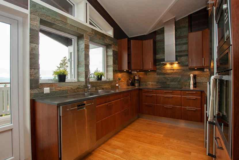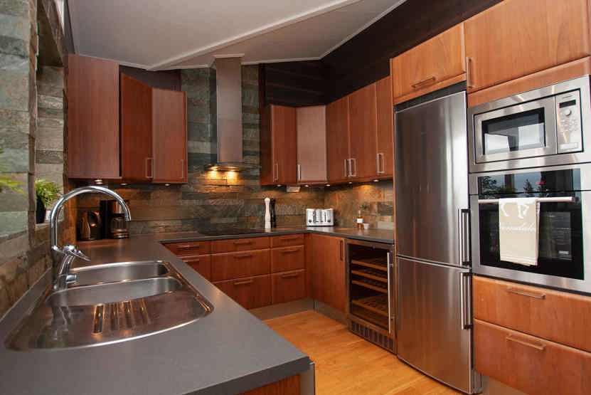 Køkkenet indeholder mikro, køleskab med fryser, opvaskemaskine, komfur med ovn.
