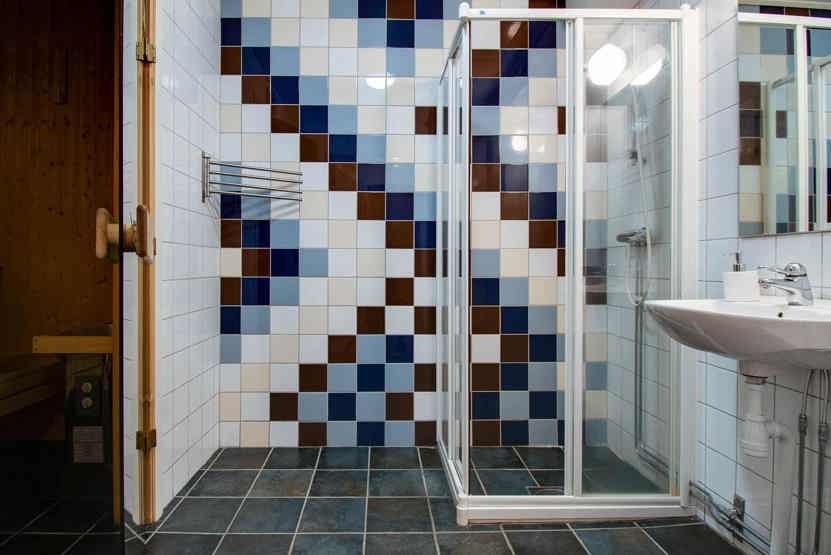 Badeværelse 1 = bruser/WC/sauna. Badeværelse 2 = bruser/WC.
