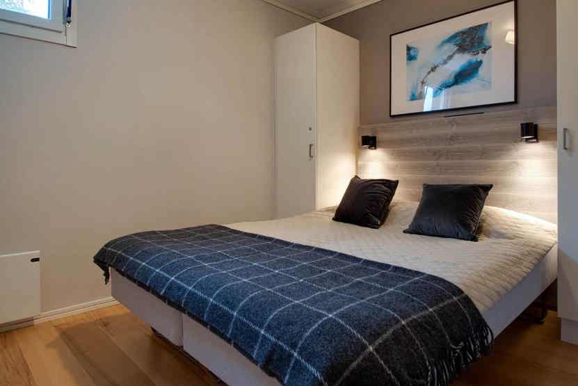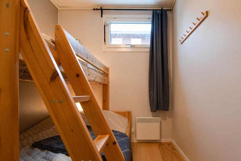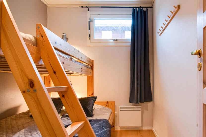 Soveværelse-1 = 1 dobbeltseng. Soveværelse-2 = 1 køjeseng med 120 cm bred underkøje. Soveværelse-3 = 1 køjeseng med 120 cm bred underkøje. Soveværelse-4 = 1 køjeseng med 120 cm bred underkøje.
