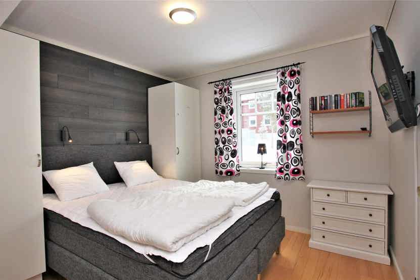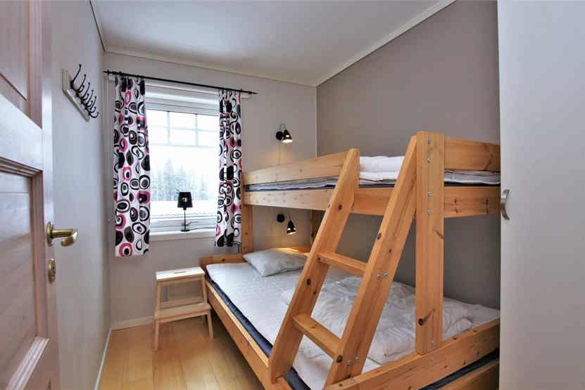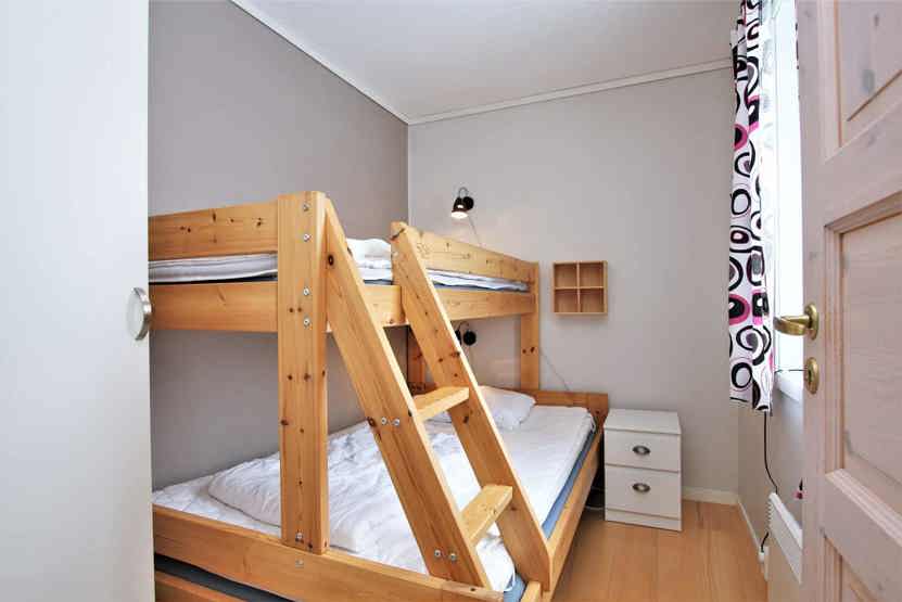 Soveværelse-1 = 1 dobbeltseng. Soveværelse-2 = 1 køjeseng med 120 cm bred underkøje. Soveværelse-3 = 1 køjeseng med 120 cm bred underkøje. Soveværelse-4 = 1 køjeseng med 120 cm bred underkøje.