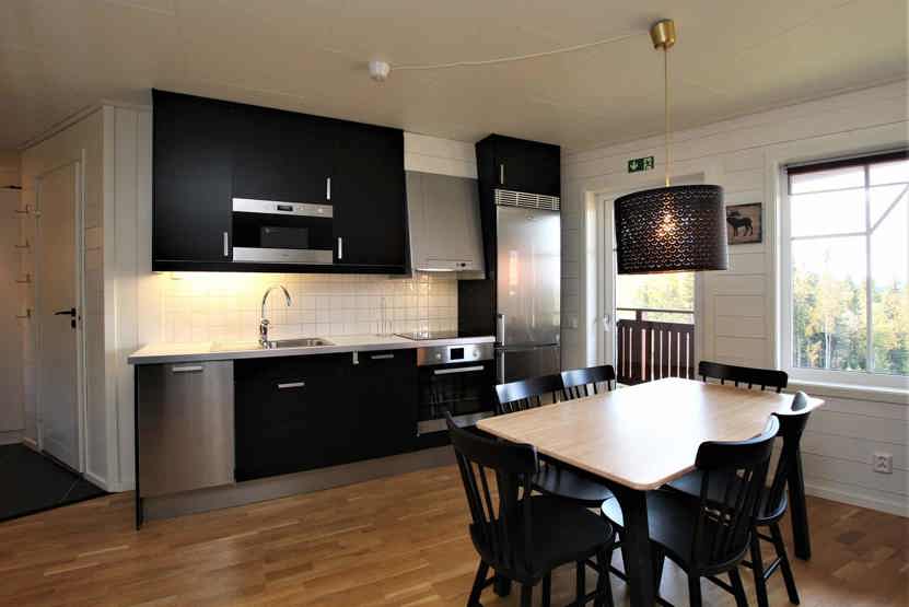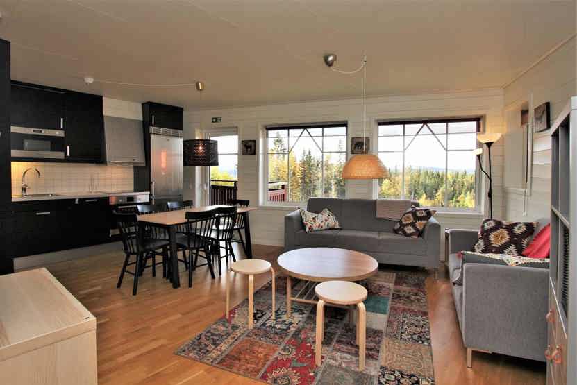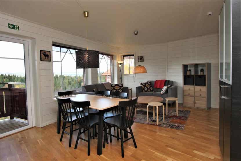 Stue med lille køkkenafdeling, TV. tørreskab, balkon/altan (der skovles ikke sne), skiopbevaring, 1 parkeringsplads, motorvarmeudtag.