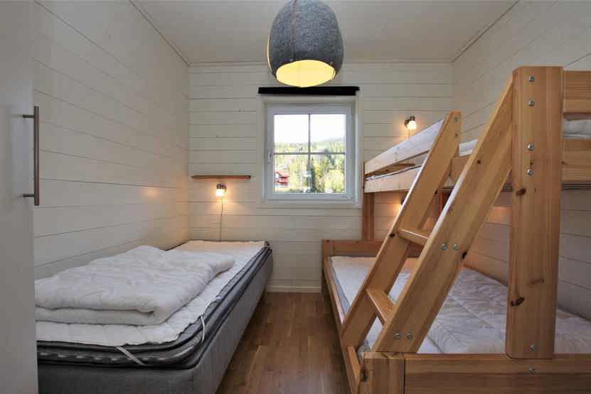 Soveværelse-1 = 1 dobbeltseng. Soveværelse-2 = 1 enkeltseng, 1 køjeseng med 120 cm bred underkøje.