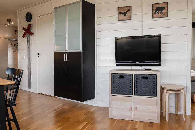 Stue med lille køkkenafdeling, TV. tørreskab, balkon/altan (der skovles ikke sne), skiopbevaring, 1 parkeringsplads, motorvarmeudtag.