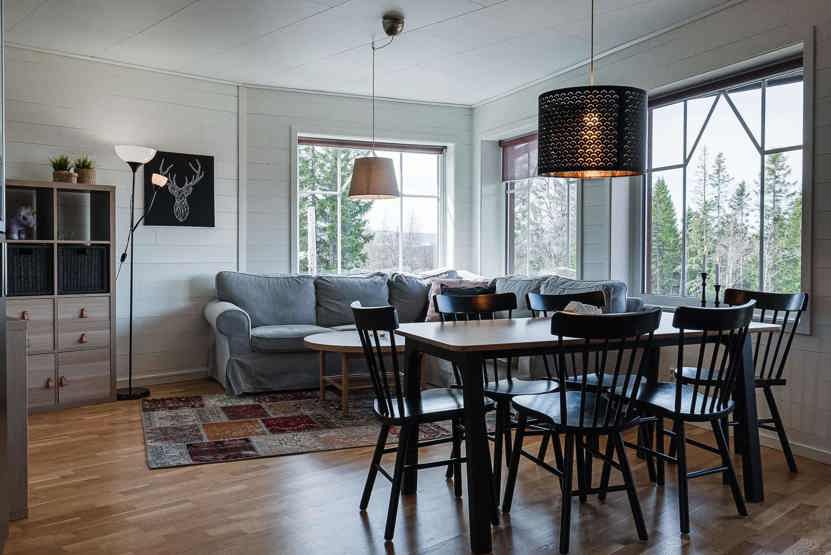 Nedre Grizzlyhusen ligger i Björnrike. Lejlighed på første etage, 5 sengepladser, 55 kvm, alrum med køkkenafdeling, 2 soveværelse, 1 bruser, 1 WC, sauna.