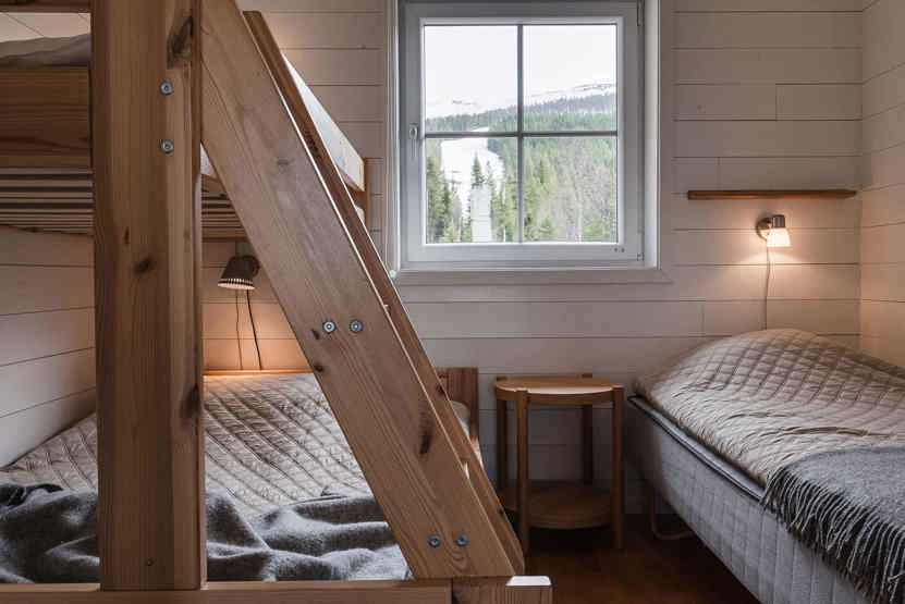 Soveværelse-1 = 1 dobbeltseng. Soveværelse-2 = 1 enkeltseng, 1 køjeseng med 120 cm bred underkøje.