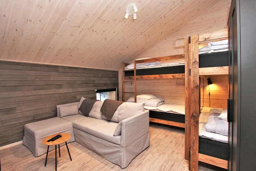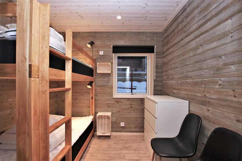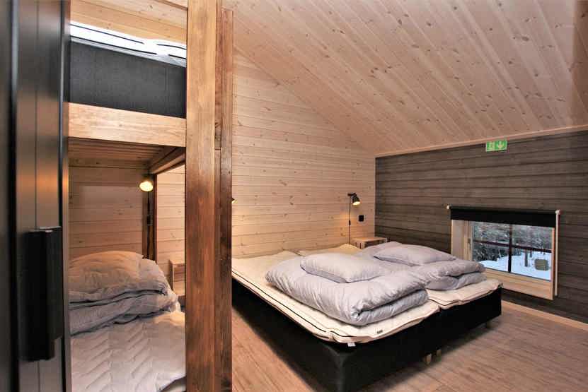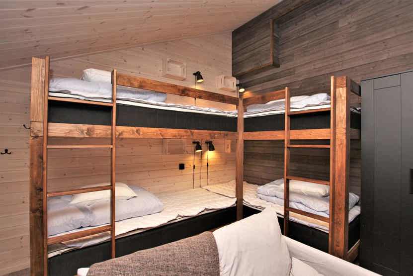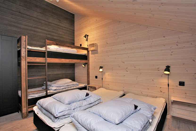Soveværelse-1 = 1 dobbeltseng. Soveværelse-2 = 1 køjeseng. Soveværelse-3 = 1 dobbeltseng, 1 køjeseng. Soveværelse-4 = 2 køjesenge.