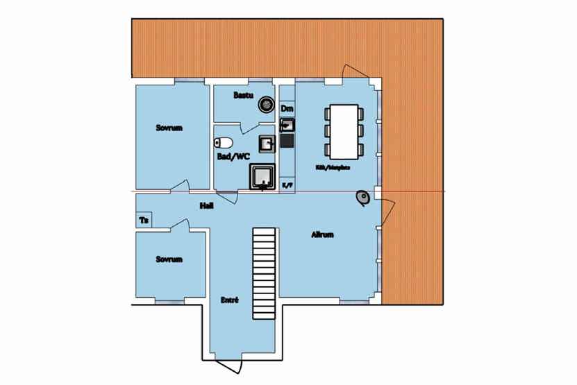Badeværelse 1 = bruser/WC/sauna. Badeværelse 2 = bruser/WC.