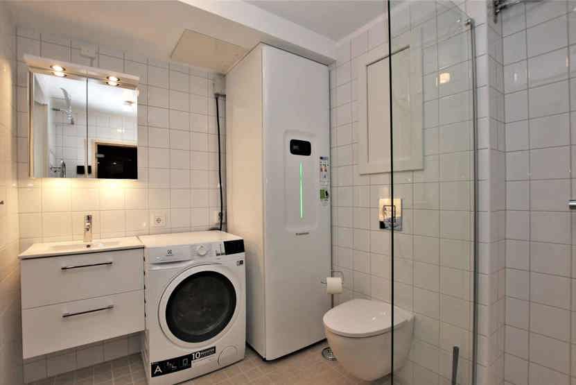 Badeværelse 1 = bruser/WC/sauna. Badeværelse 2 = bruser/WC.