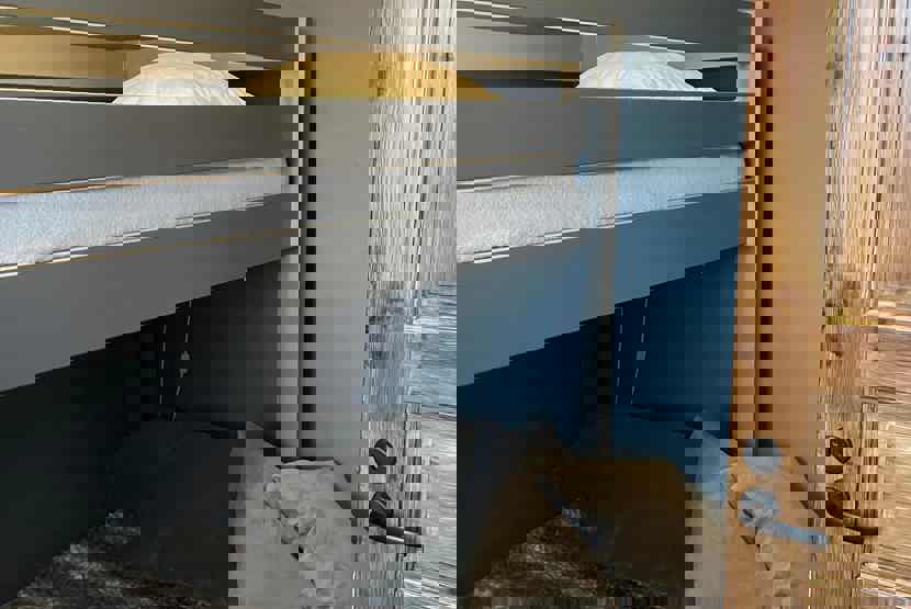 Soveværelse-1 = 1 dobbeltseng. Soveværelse-2 = 1 køyeseng med 120 cm bred underkøye og 90 cm bred overkøye. Soveværelse-3 = 1 køjeseng.