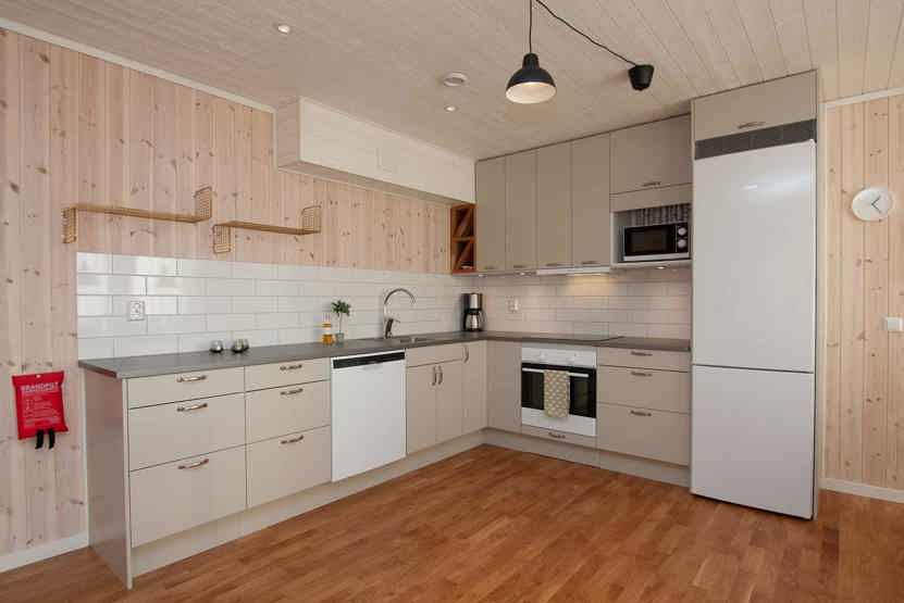 Køkkenet indeholder induktionskomfur, køleskab med fryser, indbygget ovn, opvaskemaskine, mikro.