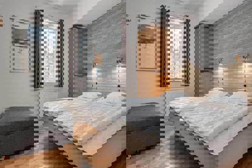 Soveværelse-1 = 1 dobbeltseng som kan laves om til to enkeltsenge. Soveværelse-2 = 2 køjesenge. Soveværelse-3 = 1 dobbeltseng som kan laves om til to enkeltsenge.