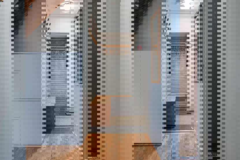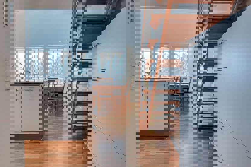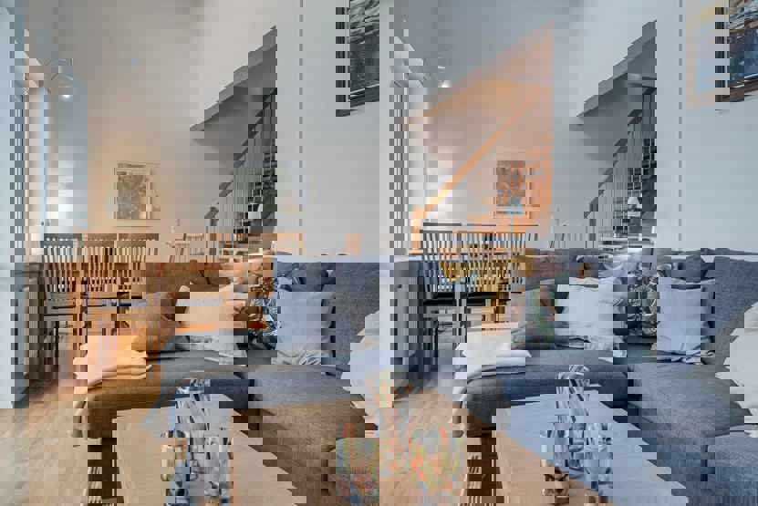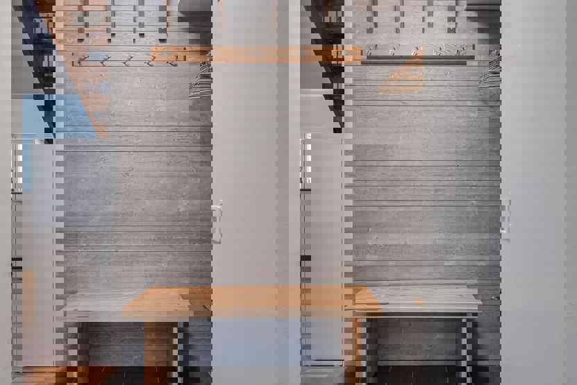vaskemaskine, tørreskab, balkon/altan (der skovles ikke sne), skiopbevaring, med en fælles indgang, 2 parkeringspladser, adgang til elbilopladere med type 2 stik mod betaling.