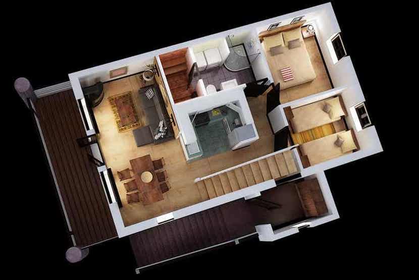 Badeværelse 1 = bruser/WC/lille sauna med plads til 3 personer. Badeværelse 2 = bruser/WC.