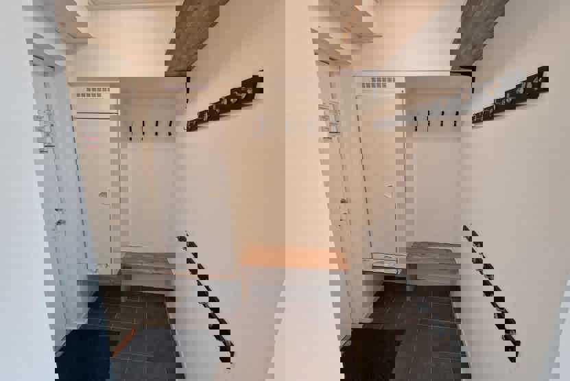 vaskemaskine, tørreskab, balkon/altan (der skovles ikke sne), skiopbevaring, med en fælles indgang, trapper, 2 parkeringspladser, adgang til elbilopladere med type 2 stik mod betaling.