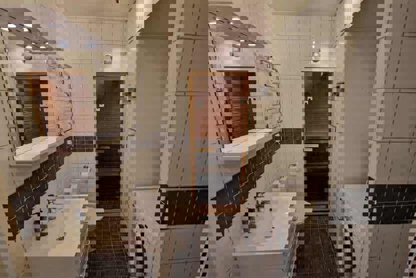 Badeværelse 1 = bruser/WC/lille sauna med plads til 3 personer. Badeværelse 2 = bruser/WC.