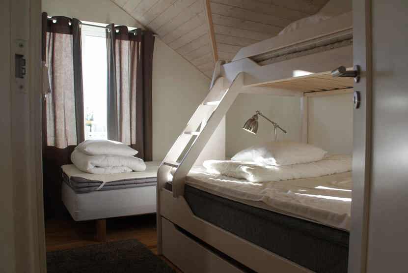 Soveværelse-1 = 1 dobbeltseng. Soveværelse-2 = 1 køjeseng, 1 enkeltseng.
