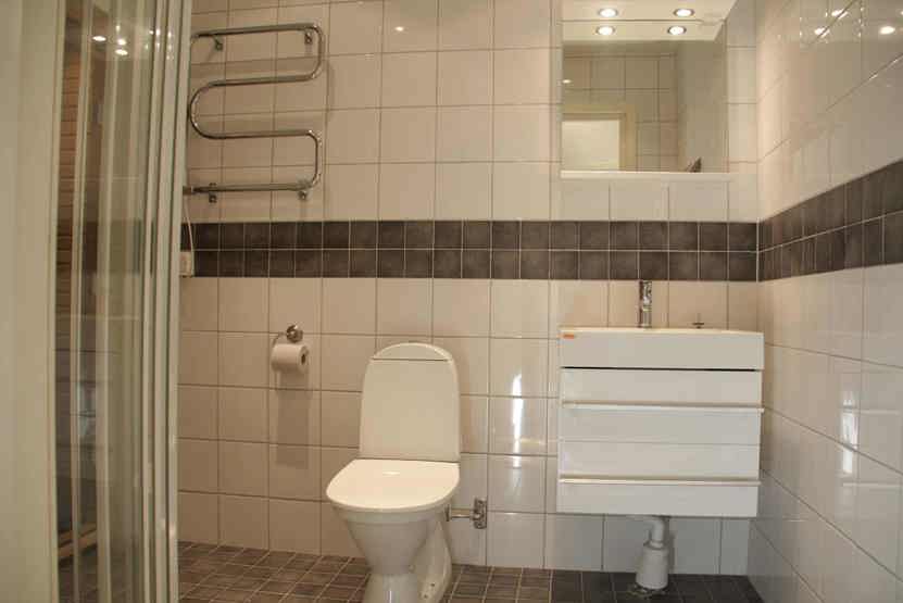 Badeværelse 1 = bruser/WC/lille sauna med plads til 3 personer. Badeværelse 2 = wc.