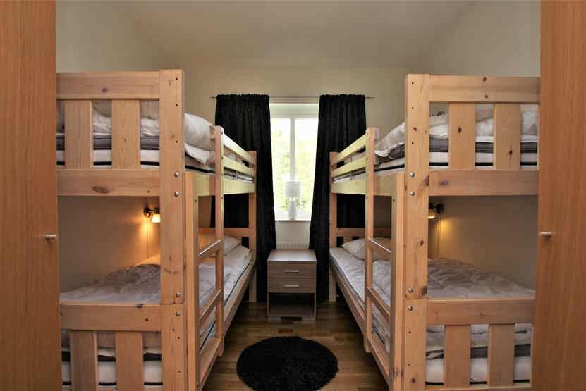 Soveværelse-1 = 1 dobbeltseng. Soveværelse-2 = 2 køjesenge. Soveværelse-3 = 1 dobbeltseng.