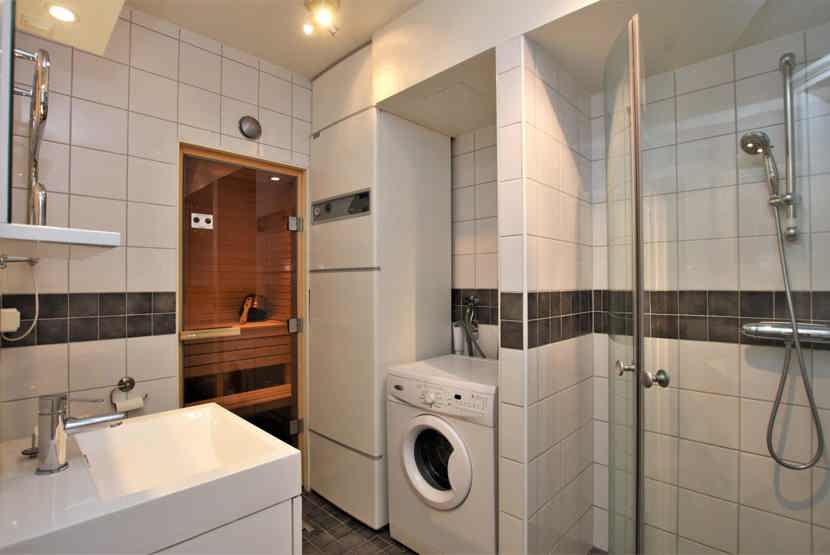 Badeværelse 1 = bruser/WC/lille sauna med plads til 3 personer. Badeværelse 2 = bruser/WC.