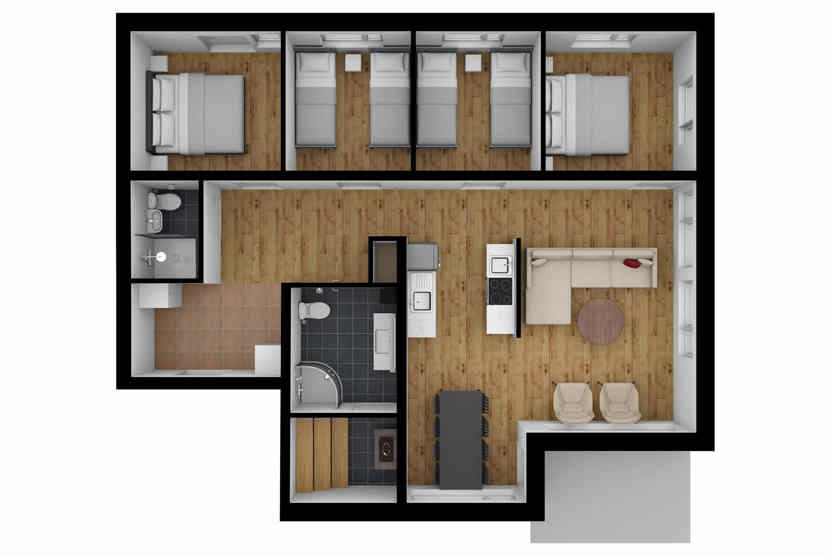 Soveværelse-1 = 1 dobbeltseng. Soveværelse-2 = 2 enkeltsenge. Soveværelse-3 = 2 enkeltsenge. Soveværelse-4 = 1 dobbeltseng.