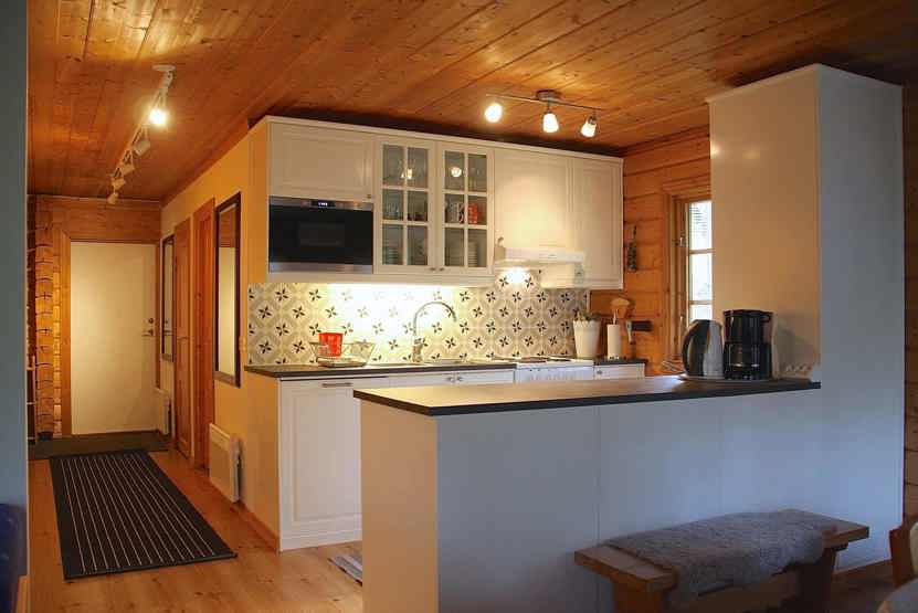 Køkkenet indeholder komfur med ovn, køleskab med fryser, opvaskemaskine, mikro.