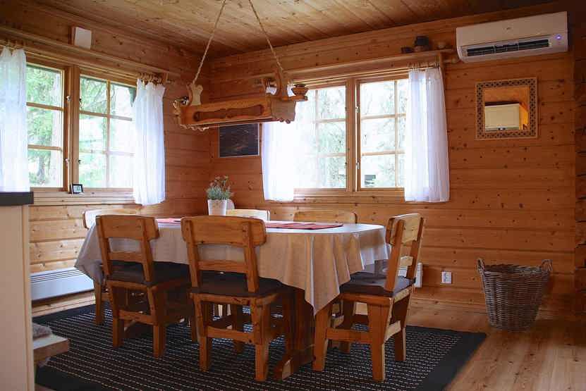 Solhöjden ligger i Björnrike. Hytte, 6 sengepladser, 70 kvm, alrum med køkkenafdeling, 2 soveværelse, 1 bruser, 1 WC, sauna.