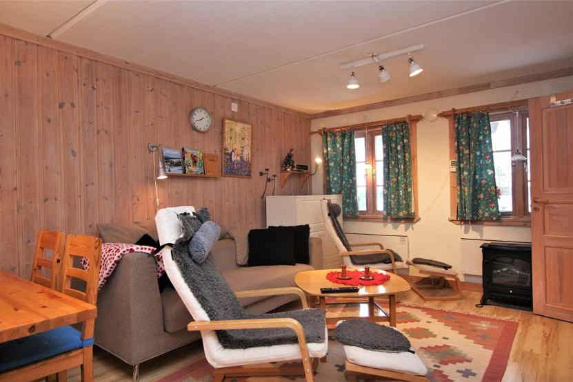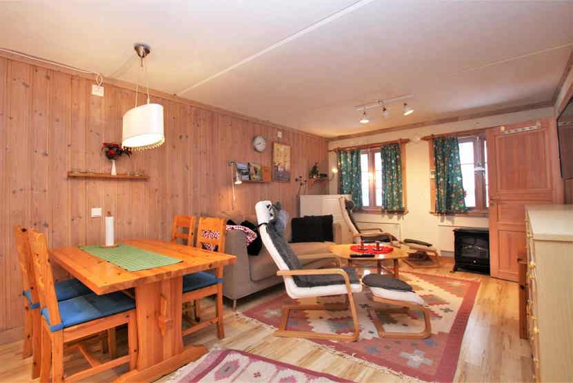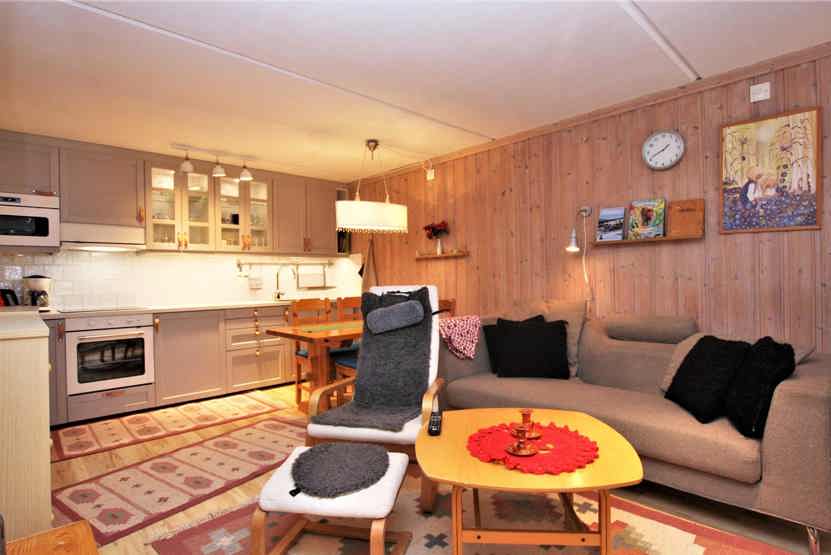 To ekstra sovepladser i stue to skabssenge med en enkelt senge (90 cm) i hver, tørreskab, balkon/altan (der skovles ikke sne), skiopbevaring, 1 parkeringsplads.