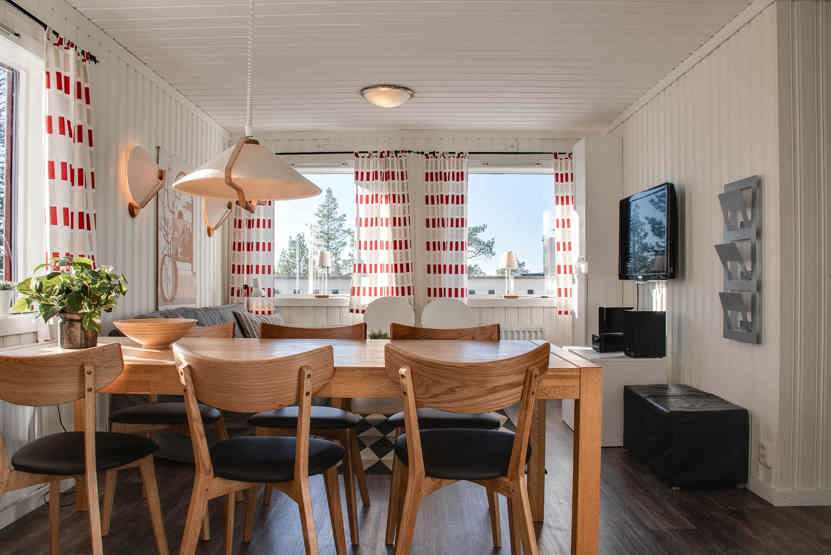 Solhöjden ligger i Björnrike. Lejlighed på første etage, 6 sengepladser, 52 kvm, alrum med køkkenafdeling, 2 soveværelse, 1 bruser, 1 WC, sauna.