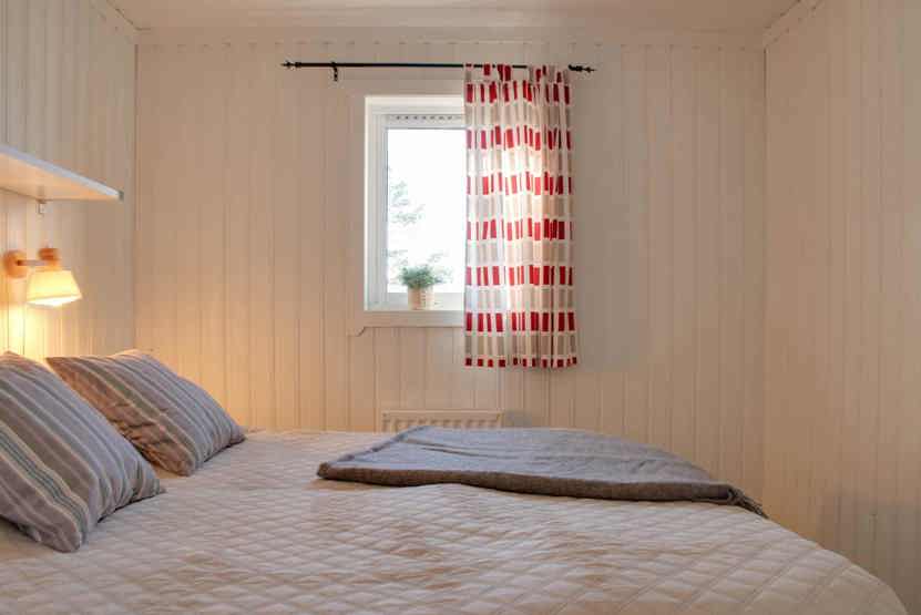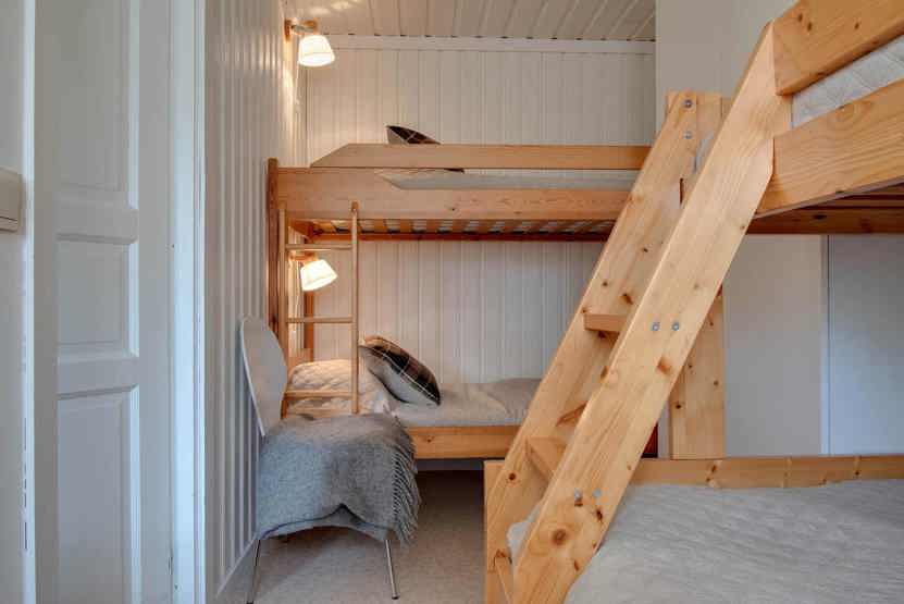 Soveværelse-1 = 1 køyeseng med 120 cm bred underkøye og 90 cm bred overkøye, 1 køjeseng hvor både over og underkøje er 90 cm bred. Soveværelse-2 = 1 dobbeltseng 160 cm bred.