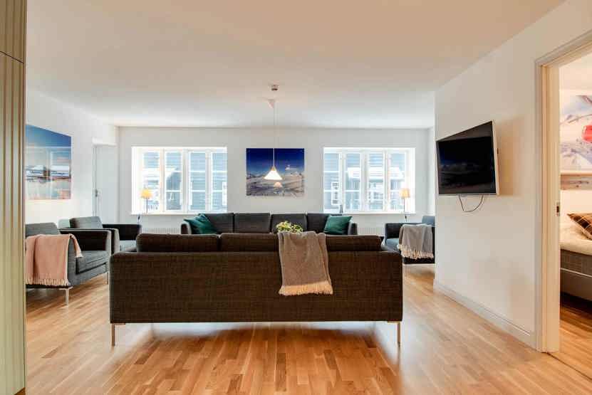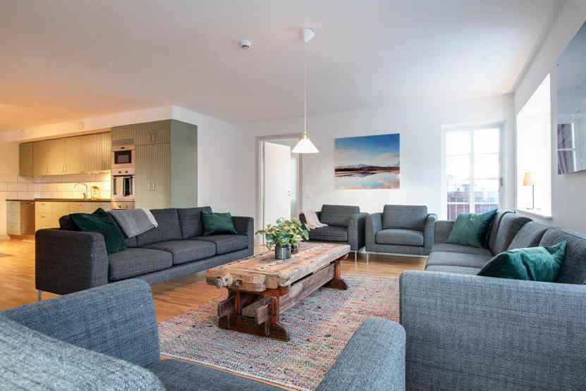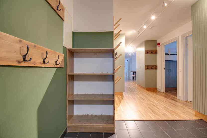 vaskemaskine, tørreskab, 2 balkoner (der skovles ikke sne), skiopbevaring, med en fælles indgang, elevator findes i huset, 3 parkeringspladser.