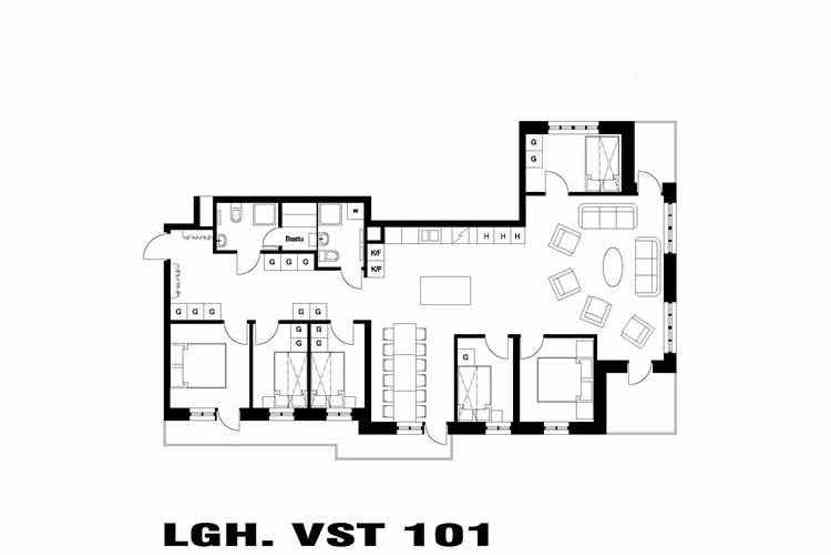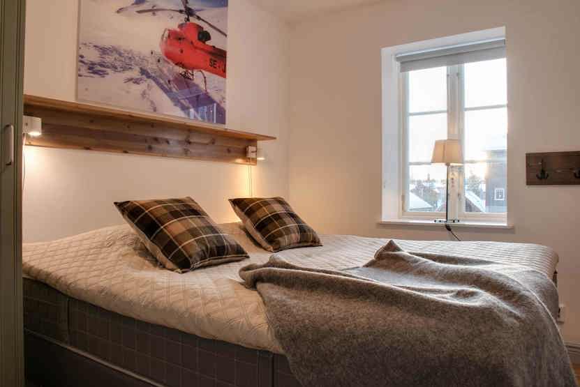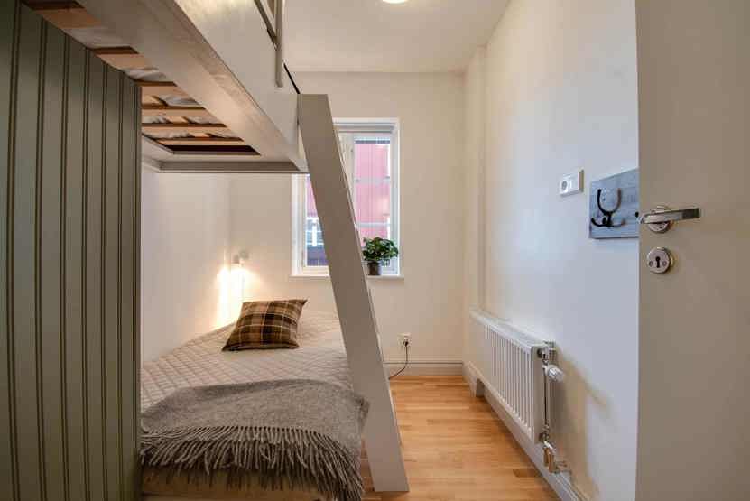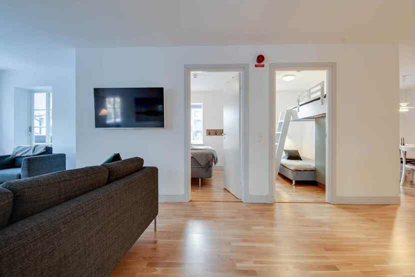 Soveværelse-1 = 1 dobbeltseng. Soveværelse-2 = 1 dobbeltseng. Soveværelse-3 = 1 køjeseng med 120 cm bred underkøje og 80 cm bred overkøje. Soveværelse-4 = 1 køjeseng med 105 cm bred underkøje og 80 cm bred overkøje. Soveværelse-5 = 1 køjeseng med 105 cm bred underkøje og 80 cm bred overkøje. Soveværelse-6 = 1 køjeseng med 105 cm bred underkøje og 80 cm bred overkøje.