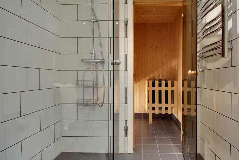 Badeværelse 1 = bruser/WC/sauna. Badeværelse 2 = bruser/WC.
