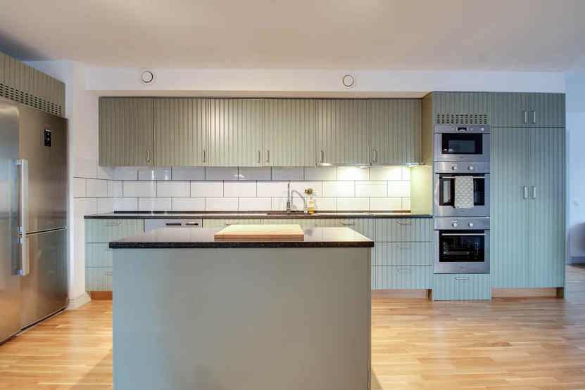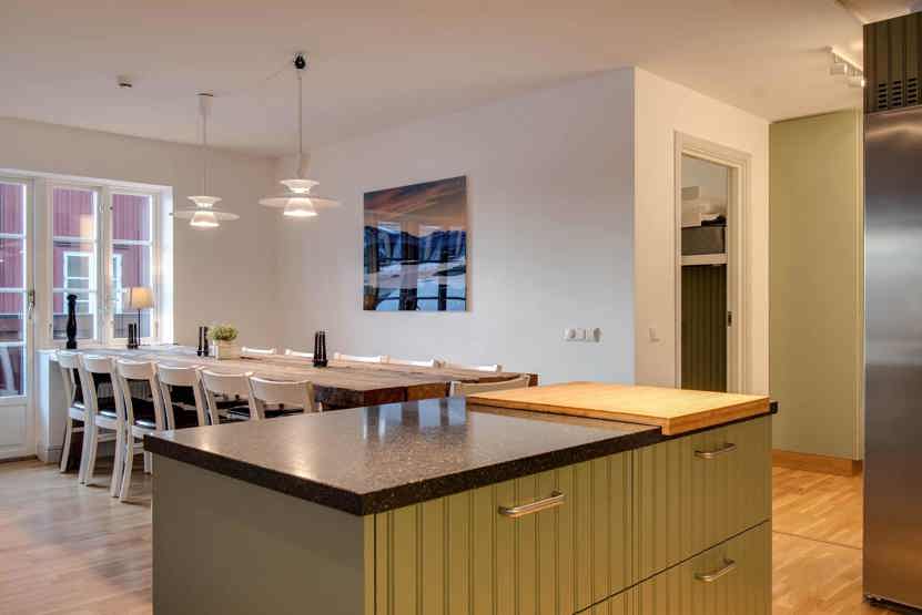 Køkkenet indeholder 2 komfurer, 2 ovner, køleskab med fryser, køleskab, opvaskemaskine, mikro.