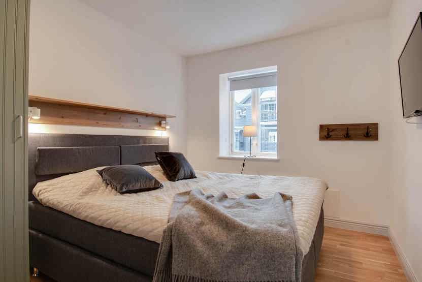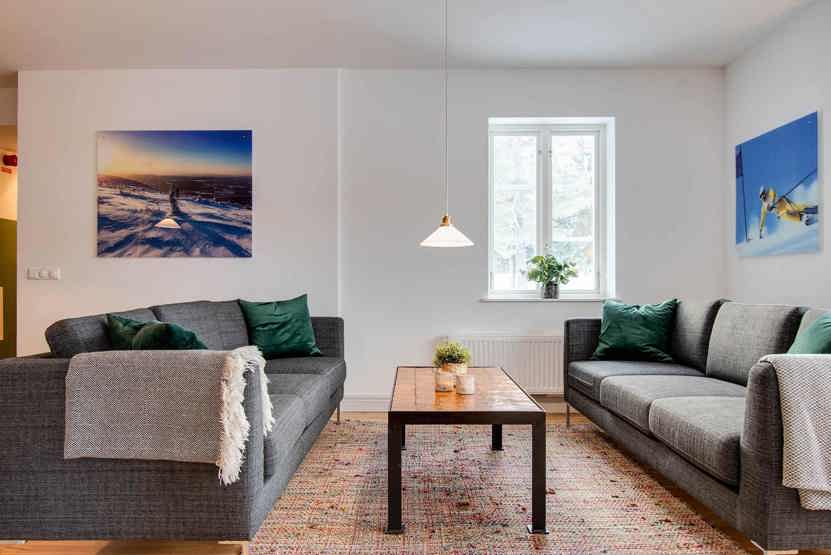 vaskemaskine, tørreskab, balkon (der skovles ikke sne), skiopbevaring, med en fælles indgang, elevator findes i huset, 2 parkeringspladser.