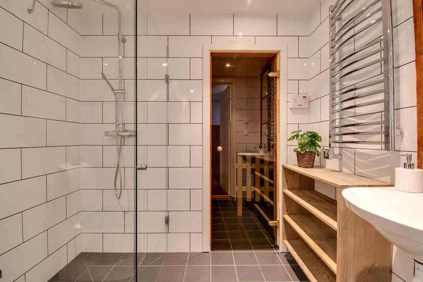 Badeværelse 1 = bruser/WC/sauna. Badeværelse 2 = bruser/WC.