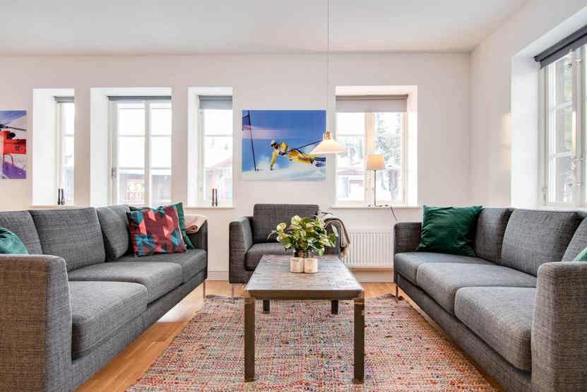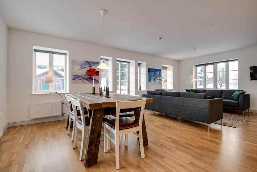 Skalets torg, Bagerihuset ligger i Vemdalsskalet. Lejlighed på 2 etage, med entré i stueplan, 6 sengepladser, 88 kvm, alrum med køkkenafdeling, 3 soveværelse, 2 brusere, 2 WC, sauna.