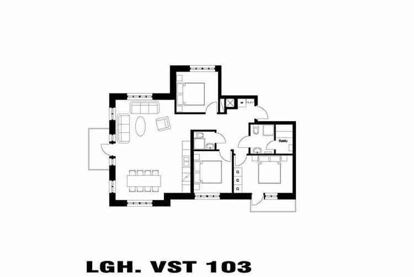 Soveværelse-1 = 1 dobbeltseng. Soveværelse-2 = 1 dobbeltseng. Soveværelse-3 = 1 dobbeltseng.