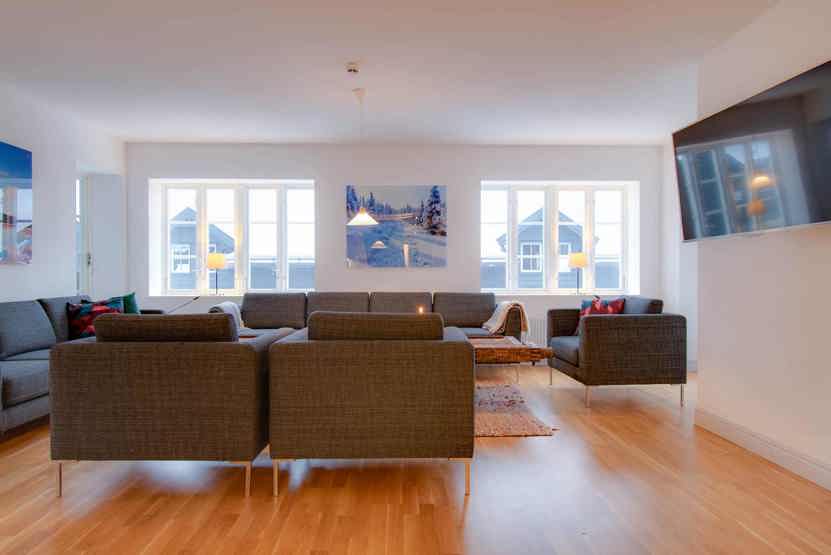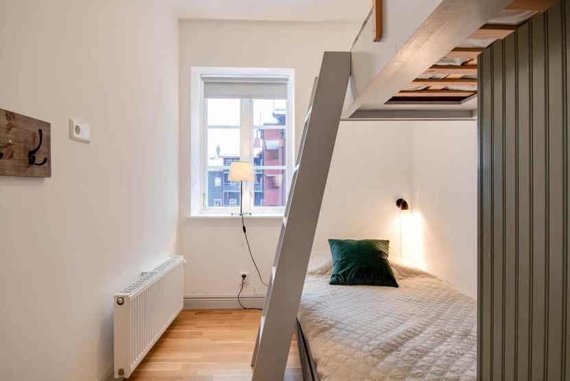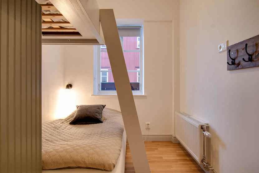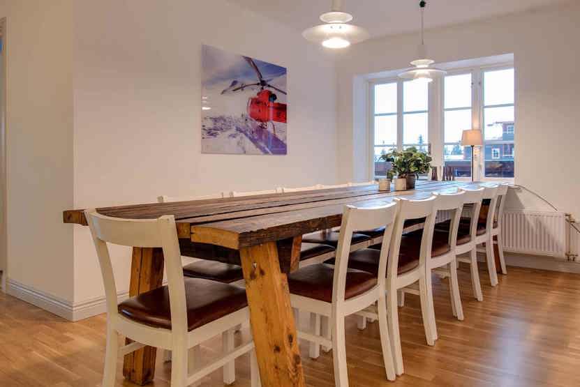Skalets torg, Bagerihuset ligger i Vemdalsskalet. Lejlighed, Placeret på 3. etage, 12 sengepladser, 131 kvm, alrum med køkkenafdeling, 6 soveværelse, 2 brusere, 2 WC, sauna.