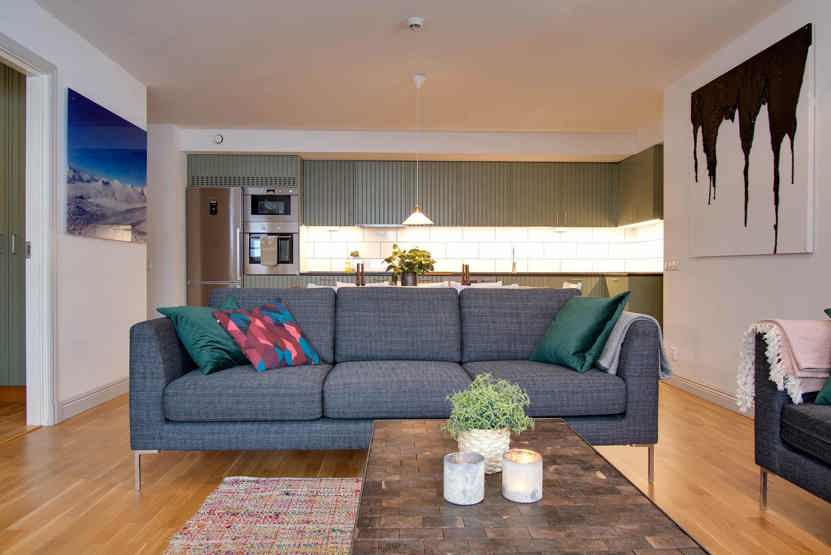 vaskemaskine, tørreskab, balkon (der skovles ikke sne), skiopbevaring, med en fælles indgang, elevator findes i huset, 2 parkeringspladser.