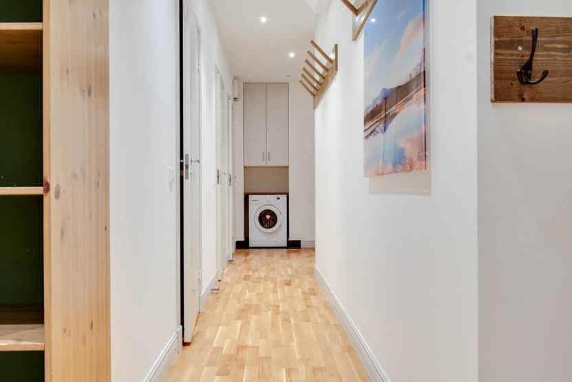 vaskemaskine, tørreskab, 2 balkoner (der skovles ikke sne), skiopbevaring, med en fælles indgang, elevator findes i huset, 3 parkeringspladser.