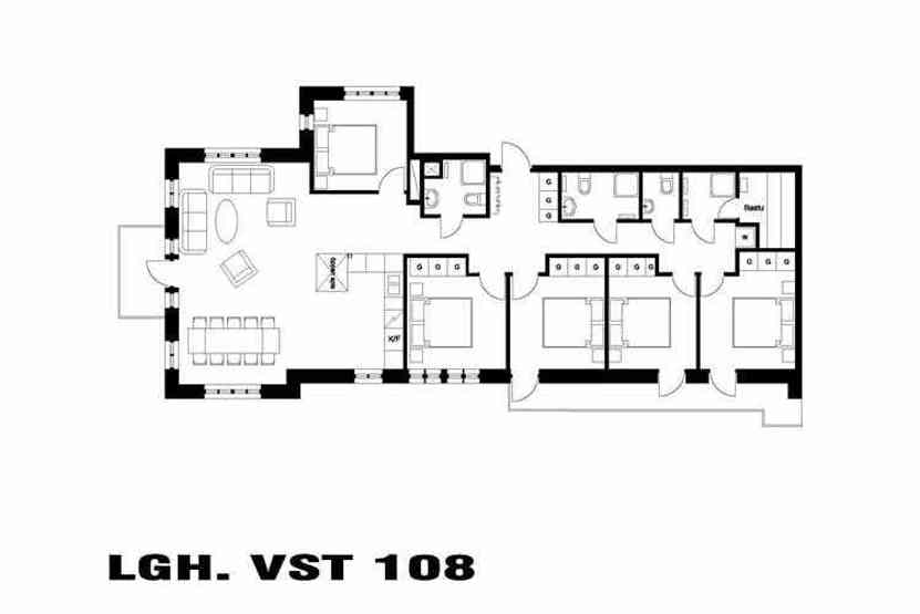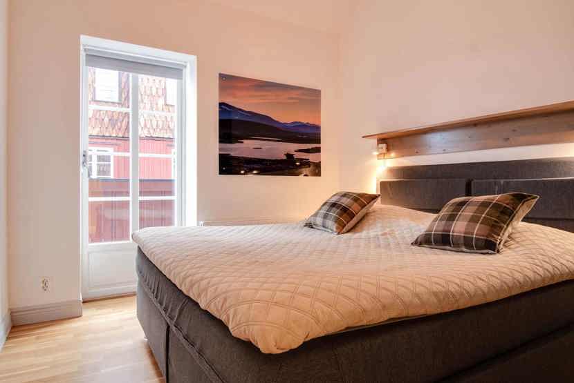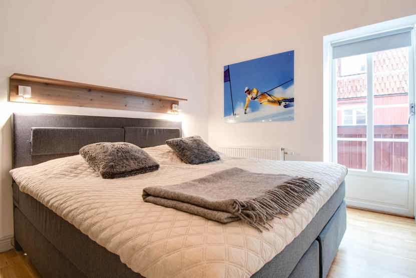 Skalets torg, Bagerihuset ligger i Vemdalsskalet. Lejlighed, Placeret på 4. etage, 10 sengepladser, 138 kvm, alrum med køkkenafdeling, 5 soveværelse, 3 brusere, 3 WC, sauna.