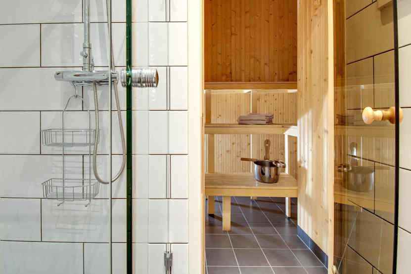 Badeværelse 1 = bruser/sauna. Badeværelse 2 = bruser/WC. Badeværelse 3 = bruser/WC. Badeværelse 4 = wc.
